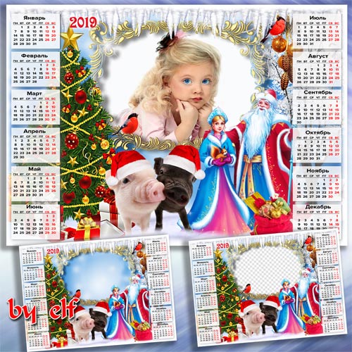 Новогодний календарь-рамка на 2019 год с символом года поросятами - Дед Мороз пусть к вам придет, счастье в дом ваш принесет PSD | 4961х3508 | 300 dpi | 105.7 Mb Автор: lunar.elf