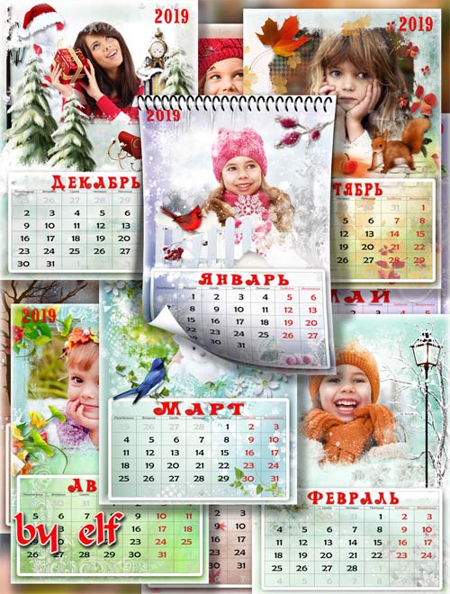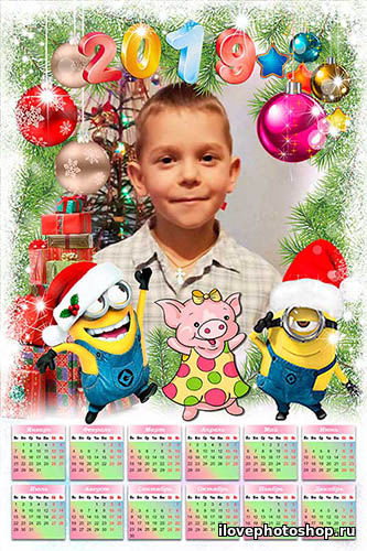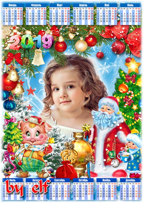 Календарь на 2019 год с рамкой для фото - Год Свиньи мы все встречаем, друг другу счастья пожелаем PSD | 3508x4961| 300 dpi | 121.6 Mb Автор: lunar.elf
