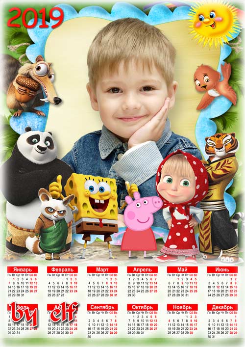 Праздничный календарь на 2019 год к Дню Рождения - Пускай лишь солнечное лето всегда живет в душе твоей PSD | 3508x4961 | 300 dpi | 107 Mb Автор: lunar.elf