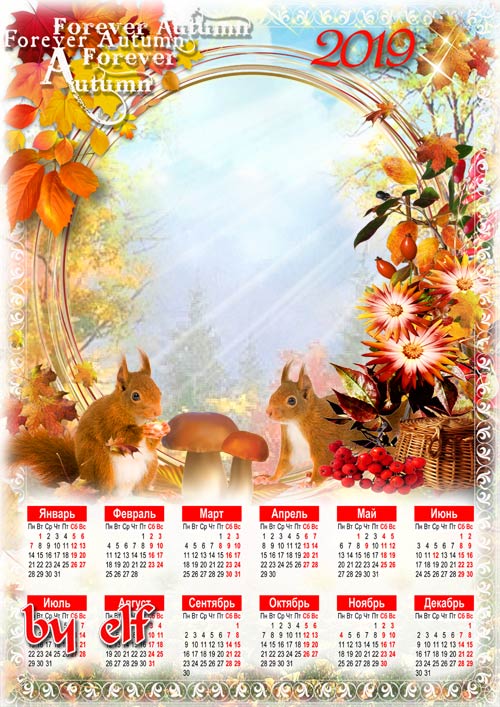 Семейный календарь-фоторамка на 2019 год - Осень, радуя прохладой, влажной поступью идет PSD | 3508x4961 | 300 dpi | 121.6 Mb Автор: lunar.elf