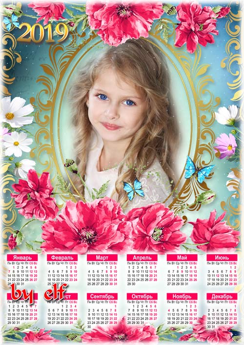 Календарь-рамка на 2019 год - Нет краше ангельских цветов, которые зовутся красным маком PSD | 4961х3508 | 300 dpi | 141.9 Mb Автор: lunar.elf