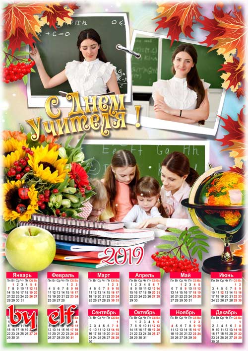 Календарь-рамка на 2019 год - С Днем учителя PSD + PNG + JPG | 3602 x 5400 | 300 dpi | 92.70 MB Автор: sergey1971