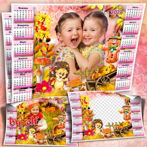 Детский календарь-фоторамка на 2019 год - Ходит осень в нашем парке, дарит осень всем подарки PSD | 4961х3508 | 300 dpi | 120 Mb Автор: lunar.elf