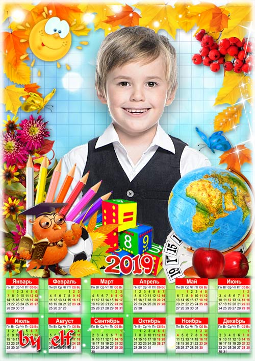 Школьный календарь-фоторамка на 2019 год - Учись прилежно ученик PSD | 3508x4961 | 300 dpi | 101.1 Mb Автор: lunar.elf