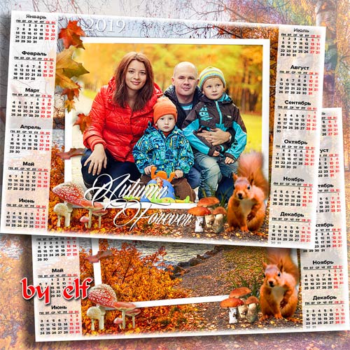 Календарь-фоторамка на 2019 год - Лес, точно терем расписной, лиловый, золотой, багряный PSD | 3508x4961 | 300 dpi | 126.3 Mb Автор: lunar.elf