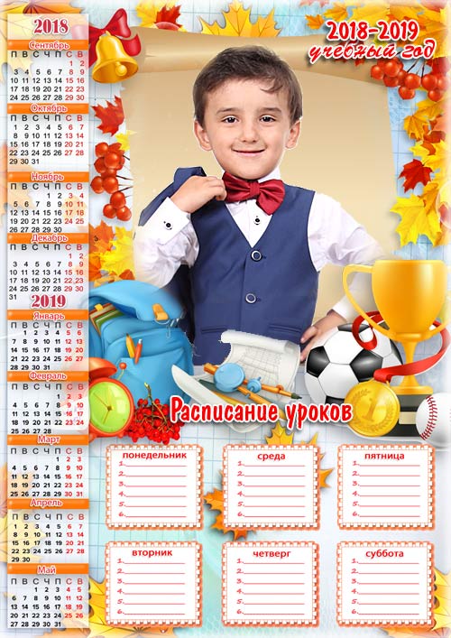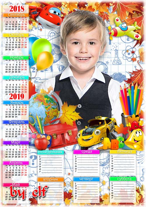 Школьный календарь-рамка на 2018-2019 учебный год с расписанием уроков - Свою школу я люблю PSD | 3890x5500 | 300 dpi | 100.6 Mb Автор: lunar.elf