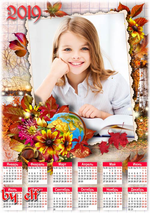 Школьный календарь-фоторамка на 2019 год - Нам с летом жалко расставаться, но школа вновь к себе зовет PSD | 3508x4961 | 300 dpi | 141.6 Mb Автор: lunar.elf