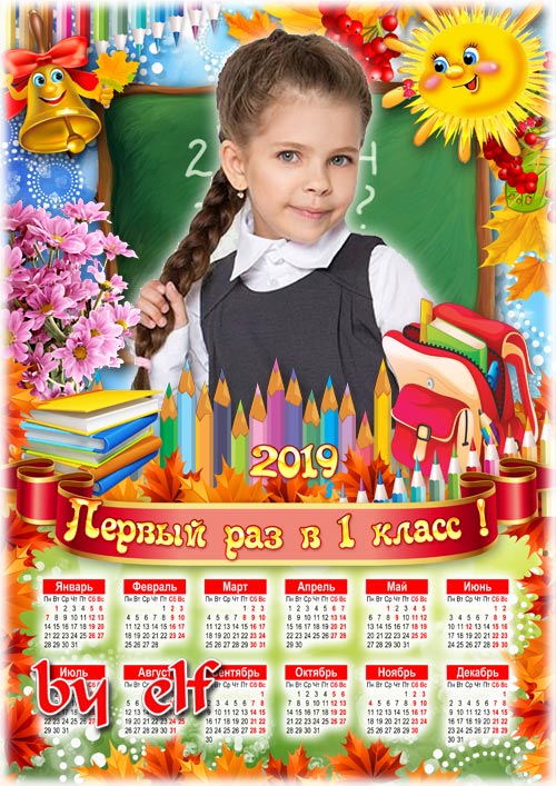 Календарь на 2019 год для школьных фото - Ты теперь не дошколёнок, ты почти что ученик PSD | 3890x5500 | 300 dpi | 126.2 Mb Автор: lunar.elf