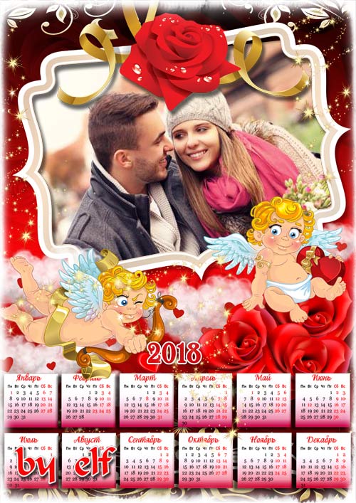Романтический календарь на 2018 год к Дню Всех Влюбленных - Стрела Амура в грудь попала PSD | 4961х3508 | 300 dpi | 103 Mb Автор: lunar.elf