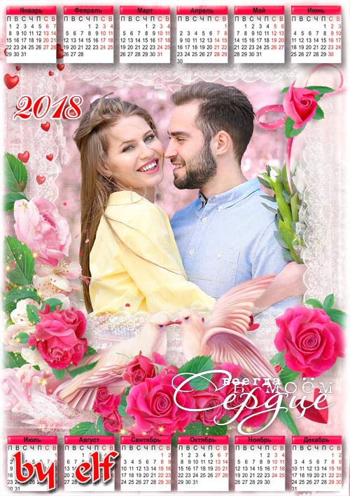 Романтический календарь на 2018 год - Ты в моем сердце PSD | 4961х3508 | 300 dpi | 119 Mb Автор: lunar.elf