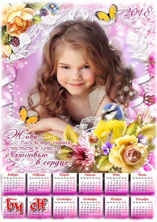 Романтический календарь на 2018 год - Ты для меня дороже всех на свете PSD | 4961х3508 | 300 dpi | 118 Mb Автор: lunar.elf