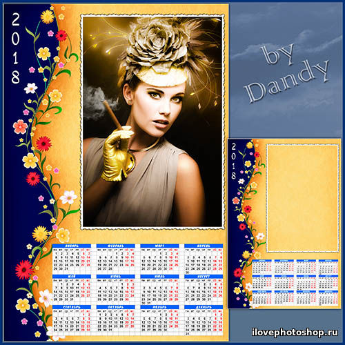Шаблон календаря на 2018 год - Цветочный гламур PSD | 3543x5315 | 300 dpi | 112.01 Mb Автор: Dandy