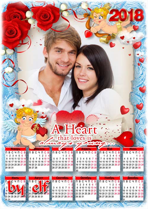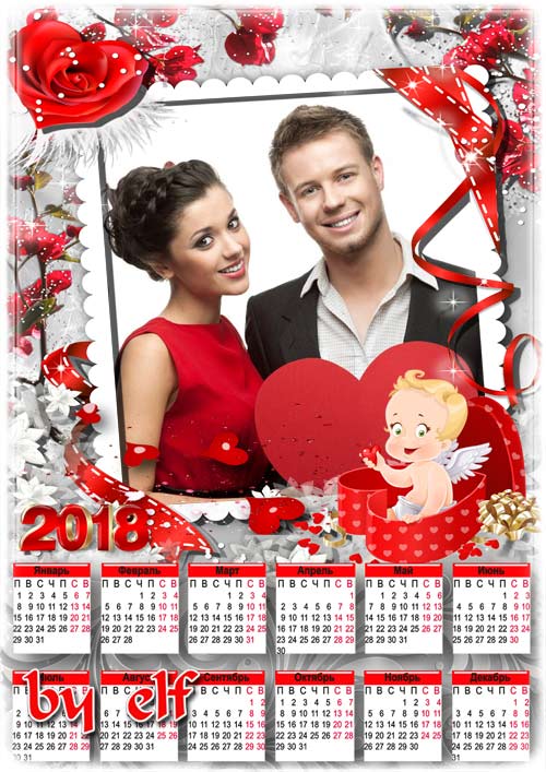 Календарь на 2018 год для влюбленных - С Днем святого Валентина,пусть любовь царит в сердцах PSD | 4961х3508 | 300 dpi | 105 Mb Автор: lunar.elf