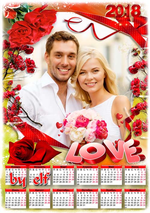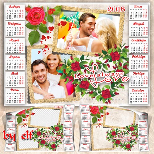 Романтический календарь на 2018 год для 2 фото - Люблю тебя, как любят только раз PSD | 4961х3508 | 300 dpi | 116.2 Mb Автор: lunar.elf
