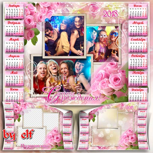 Поздравительный календарь-фоторамка на 2018 год - С Днем рожденья поздравляем, много радости желаем PSD | 4961х3508 | 300 dpi | 106.4 Mb Автор: lunar.elf
