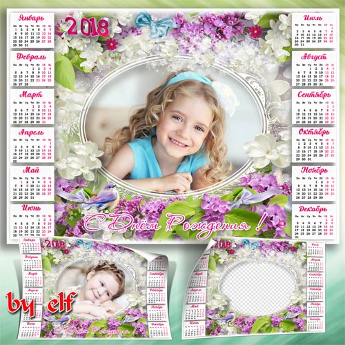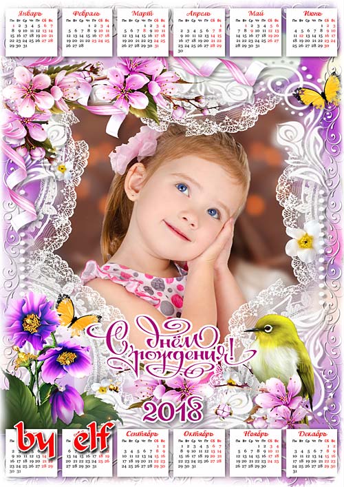 Праздничный календарь на 2018 год для 3 фото - В светлый праздник Дня рожденья пусть в душе цветут цветы PSD | 4961х3508 | 300 dpi | 105 Mb Автор: lunar.elf