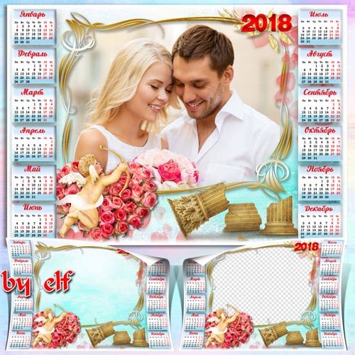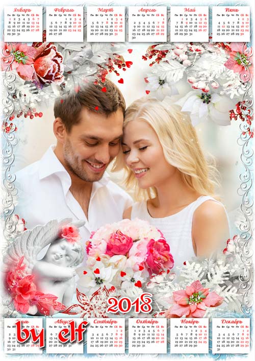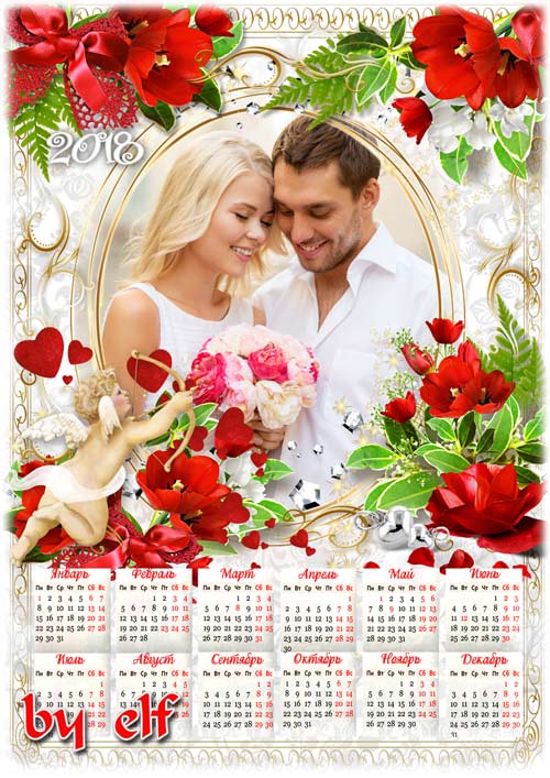 Романтический календарь на 2018 год - С тобой вся жизнь моя переменилась PSD | 4961х3508 | 300 dpi | 113.5 Mb Автор: lunar.elf