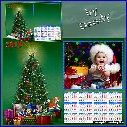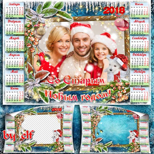 Календарь-фоторамка на 2018 год - Кто стучится у ворот? Это старый Новый год PSD | 4961х3508 | 300 dpi | 125.5 Mb Автор: lunar.elf