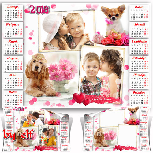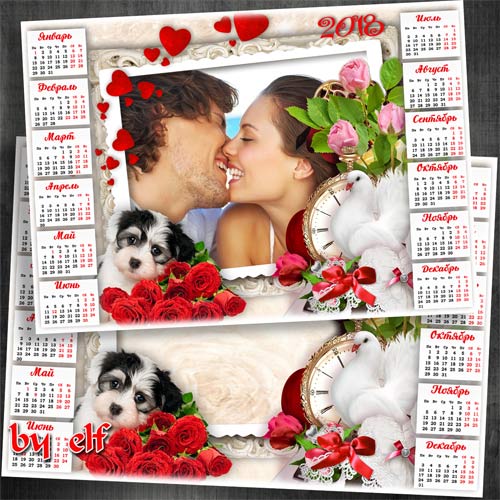 Романтический календарь на 2018 год - Счастье быть рядом PSD | 4961х3508 | 300 dpi | 117.8 Mb Автор: lunar.elf