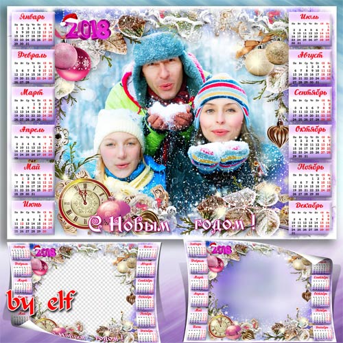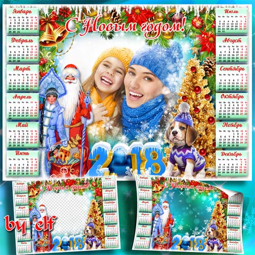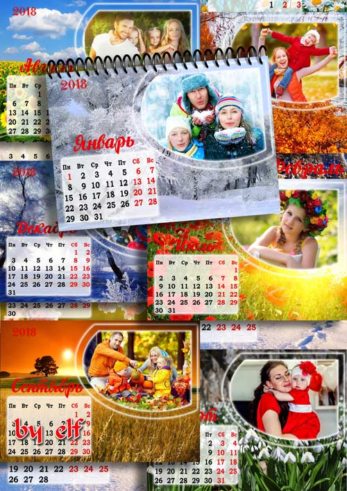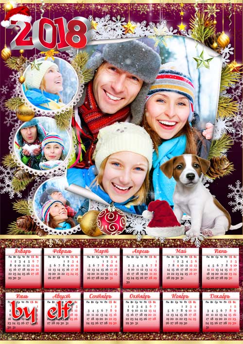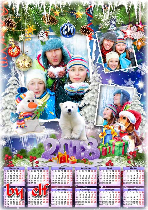 Новогодний семейный календарь на 2018 год для 4 фото - Любви, тепла, очарованья, чудес волшебных на века PSD | 4961х3508 | 300 dpi | 110 Mb Автор: lunar.elf