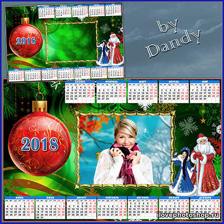Календарь на 2018 год - Новый год к нам в дом стучится PSD | 5433x3543 | 300 dpi | 103.16 Mb Автор: Dandy