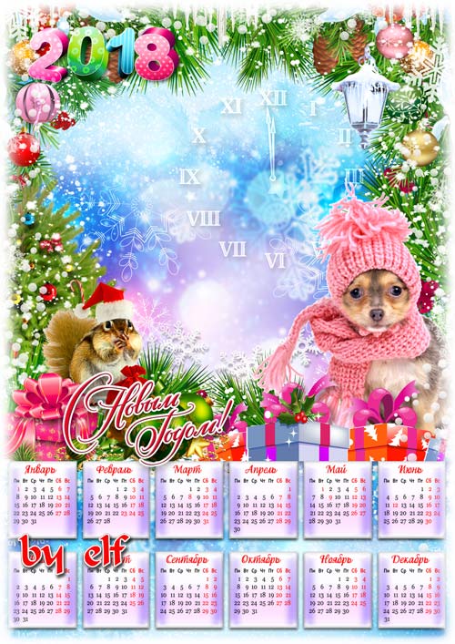 Новогодний календарь на 2018 год - Добрый дедушка Мороз мне щенка в мешке принес PSD | 4961х3508 | 300 dpi | 127 Mb Автор: lunar.elf шаблоны фотошоп уроки рамки обои клипарт календари виньетки скачать бесплатно без регистрации шрифты модели из бумаги картинки