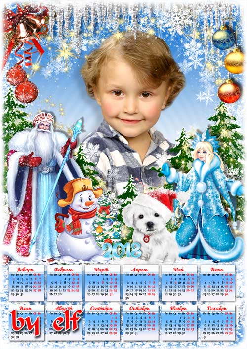 Новогодний календарь с символом 2018 года Собакой - Снежная сказка PSD | 4961х3508 | 300 dpi | 106 Mb Автор: lunar.elf шаблоны фотошоп уроки рамки обои клипарт календари виньетки скачать бесплатно без регистрации шрифты модели из бумаги картинки