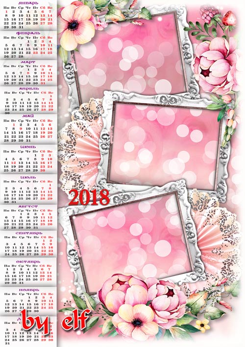 Календарь с рамкой для фото на 2018 год - Счастливые моменты жизни
