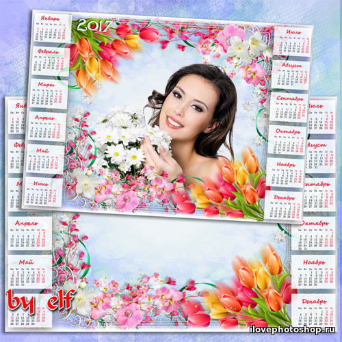 Календарь на 2017 год для фото - Весны Вам радостной и нежной Psd | 3573х5000 | 300 dpi | 127 Mb Автор: lunar.elf шаблоны фотошоп уроки рамки обои клипарт календари виньетки скачать бесплатно без регистрации шрифты модели из бумаги картинки