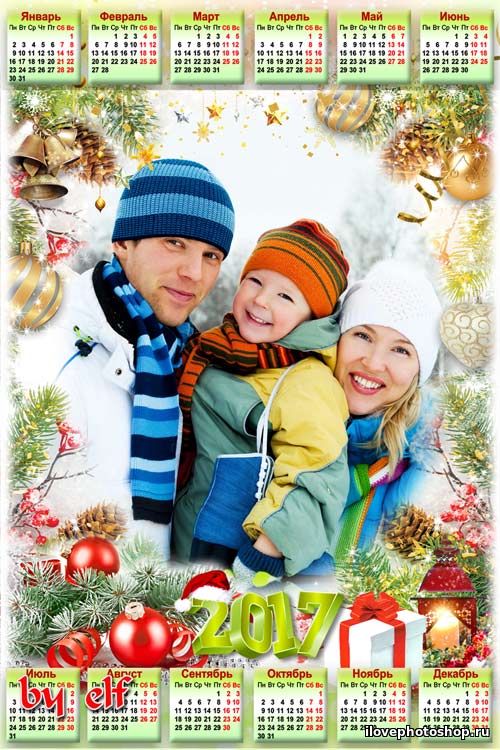 Красивый новогодний календарь на 2017 год PSD /2480х3508/ 300dpi/ 24,9mb автор: veterok шаблоны фотошоп уроки рамки обои клипарт календари виньетки скачать бесплатно без регистрации шрифты модели из бумаги картинки