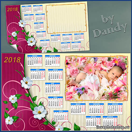 Детский календарь на 2018 год - Наш цветочек скачать бесплатно