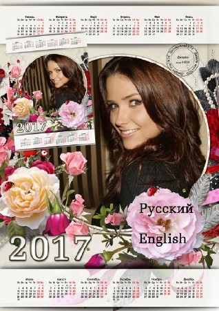 Календарь для фотошопа - Розовые розы
