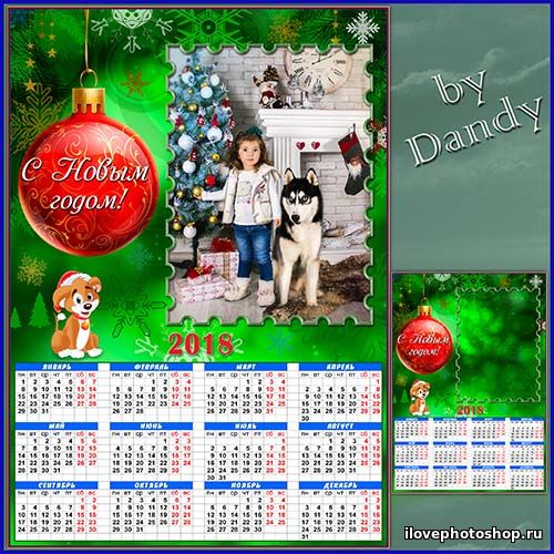 Календарь на 2018 год - Скоро год собаки скачать бесплатно