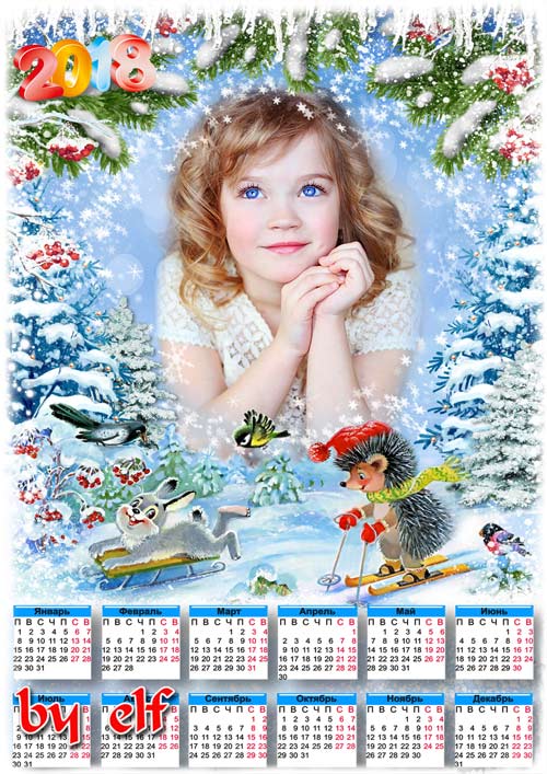 Календарь с рамкой для фото на 2018 год - Пришла зима веселая