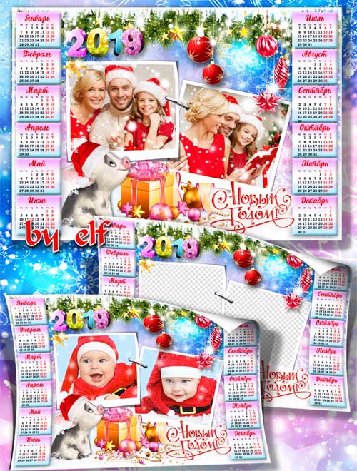 Календарь-рамка на 2019 год - Пусть будет Новый год счастливым, с надеждой, верой и любовью PSD | 3508x4961| 300 dpi | 106.3 Mb Автор: lunar.elf
