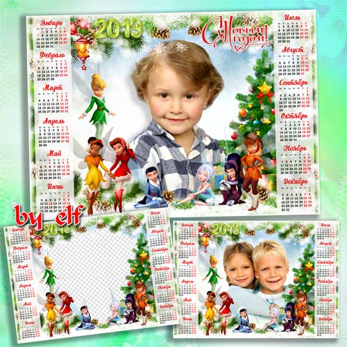 Зимний календарь с вырезом для фото на 2019 год с феями Диснея PSD | 3508х4961 | 300 dpi | 104.3 Mb Автор: lunar.elf
