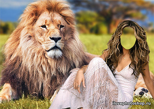 Женский фотошаблон - Под охраной льва