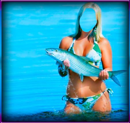 Фотошаблон - Девушка с рыбиной