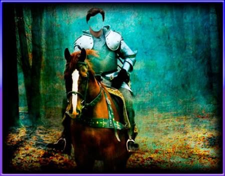 Фотошаблон для монтажа - Рыцарь на коне в лесу