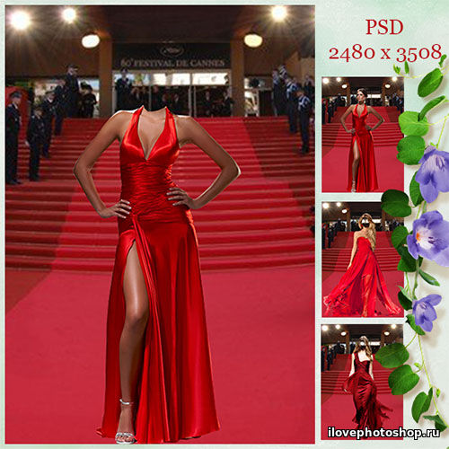 Женский фотошаблон - На красной дорожке PSD | 2480 x 3508 | 300 dpi | 57.82 Mb Примечание: В PSD 3 модели. Все слои раздельно, в группах Автор: sergey1971