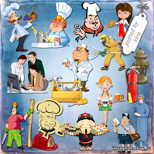 Категория: Растровый клипарт | Добавил: kira | Теги: Профессия, врач, waiter, пожарный, учитель, повар, доктор, Cook, profession, почтальоны