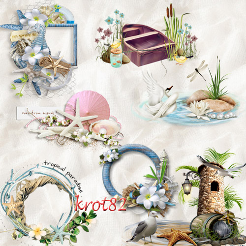 Морские кластеры для фотошопа PNG – Море, песок, лодка, пальмы, цветы 35 PNG | Размеры разные | 300 dpi | 202 MB автор: krot82